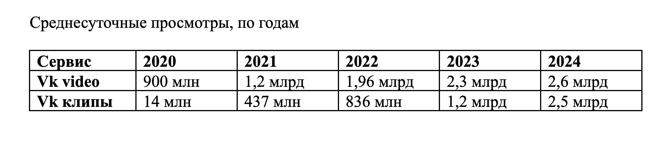 Как видно из данных по среднесуточным просмотрам, оба видеосервиса существенно увеличили свои показатели к концу 2024 года и, вероятнее всего, ещё не достигли своего пика.
